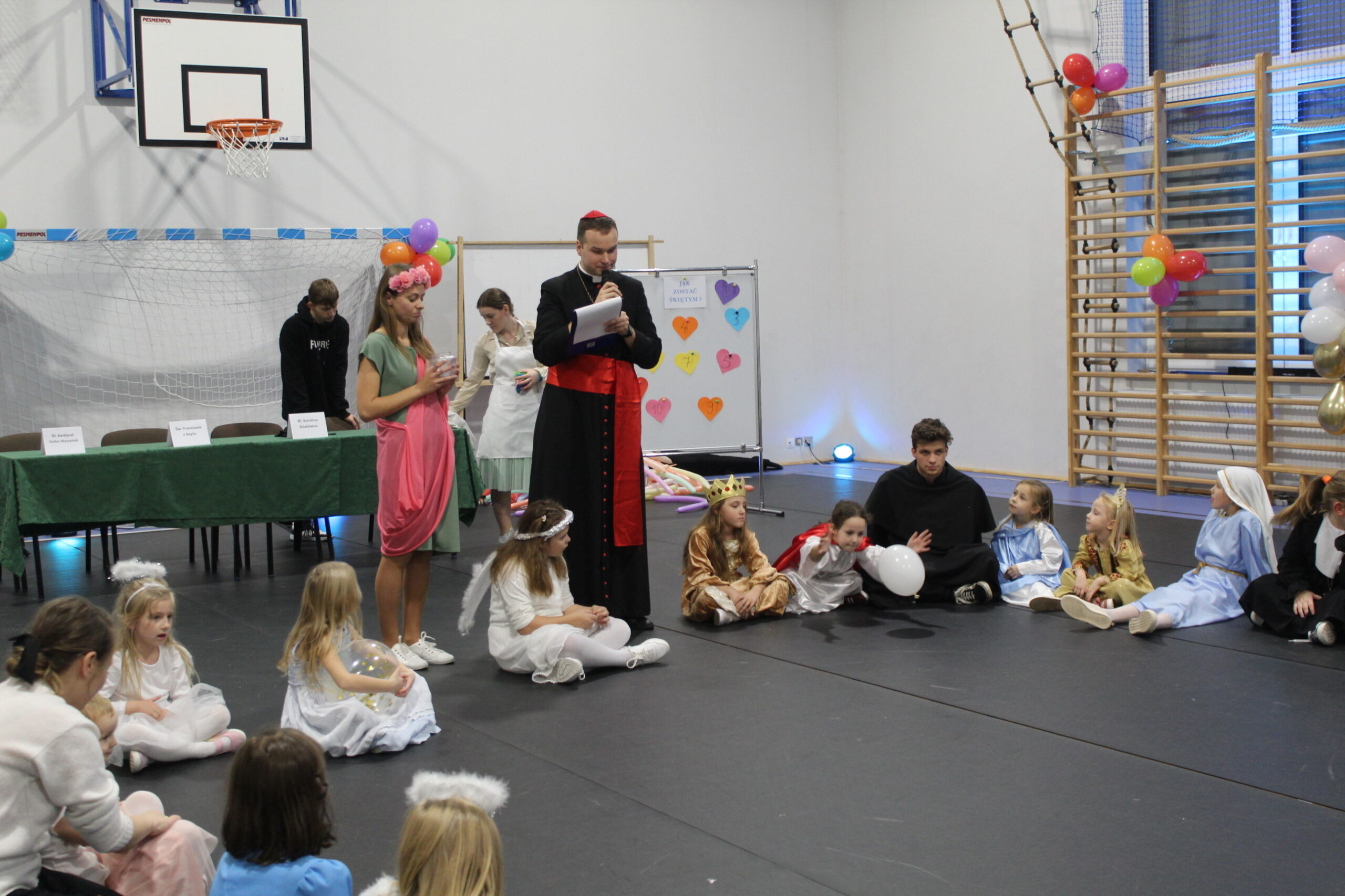 26 października 2023 roku po raz kolejny odbył się w naszej szkole Bal Wszystkich Świętych dla dzieci. Nasi uczniowie wcielili się w postacie wielu świętych i błogosławionych. Byli z nami: św. s. Faustyna, św. Weronika, Maryja, św. Szymon, św. Franciszek z Asyżu, św. Jadwiga, św. Agata, Anioły, a nawet bł. Kardynał Stefan Wyszyński!