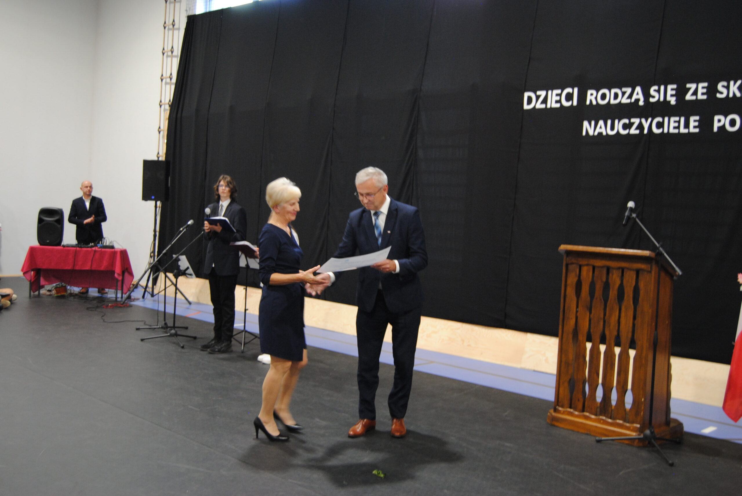 11 października świętowaliśmy w naszej szkole Dzień Edukacji Narodowej. Spotkaliśmy się w gronie naszych uczniów, nauczycieli, pracowników szkoły oraz zaproszonych Gości. Wśród nich byli: Ks. prał. Wojciech Kalinowski – Opiekun Duchowy, Jerzy Małecki – Poseł na Sejm RP, Senator Małgorzata Kopiczko, Violetta Kossakowska – Sekretarz Gminy Pisz, Mateusz Szkaradziński – Dyrektor Warmińsko-Mazurskiego Oddziału PFRON.