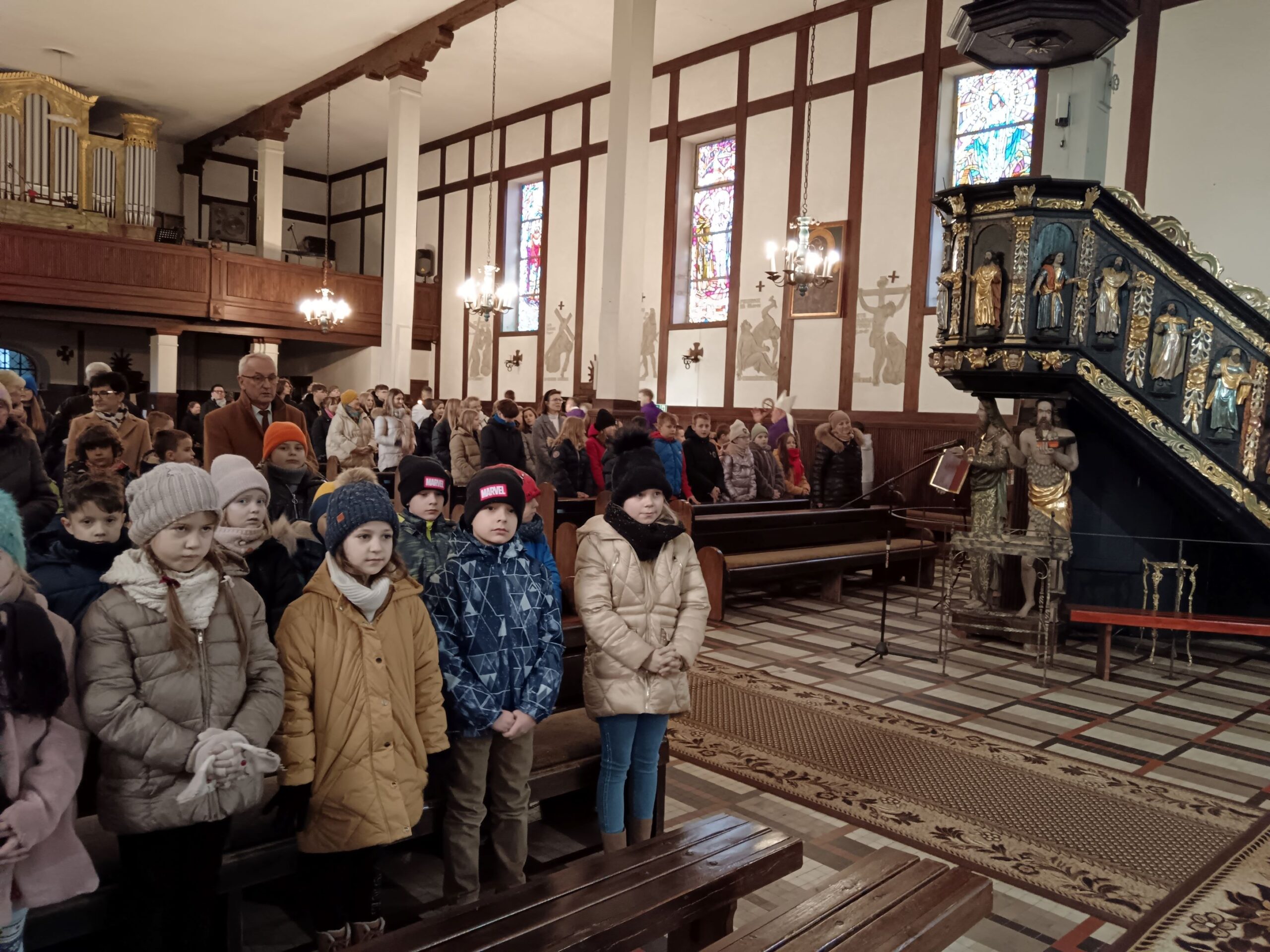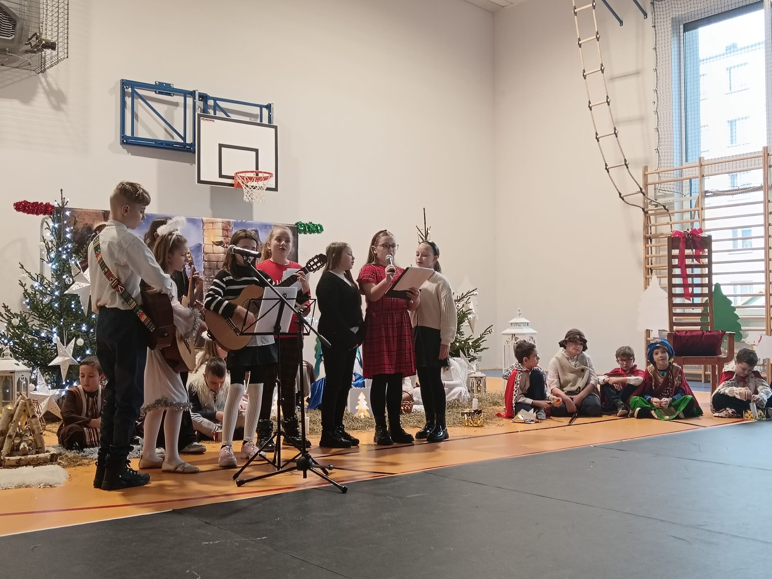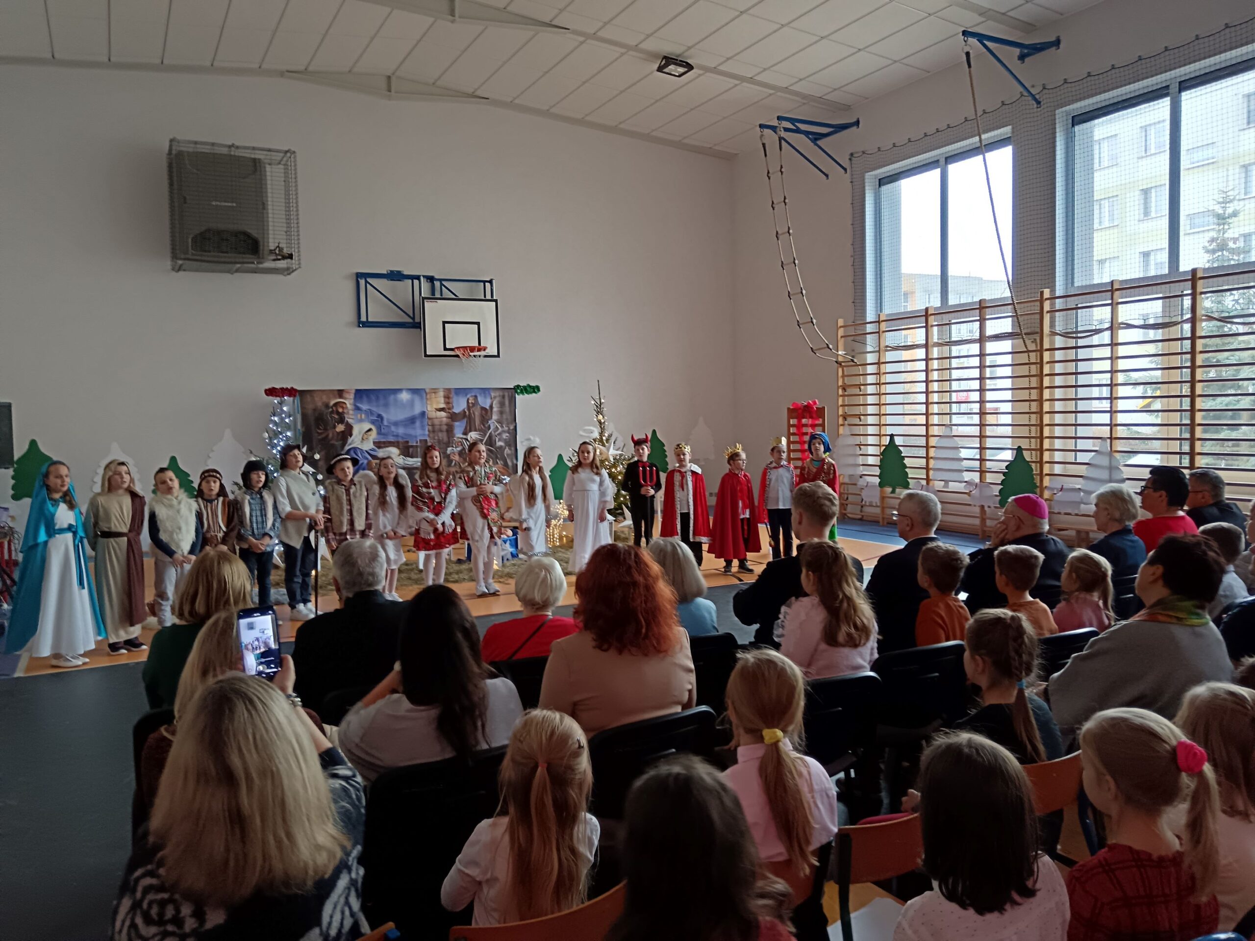 Po wspólnej modlitwie mieliśmy okazję obejrzeć Jasełka przygotowane przez uczniów klasy 3. Spotkanie umilił nam także występ naszej szkolnej scholi.