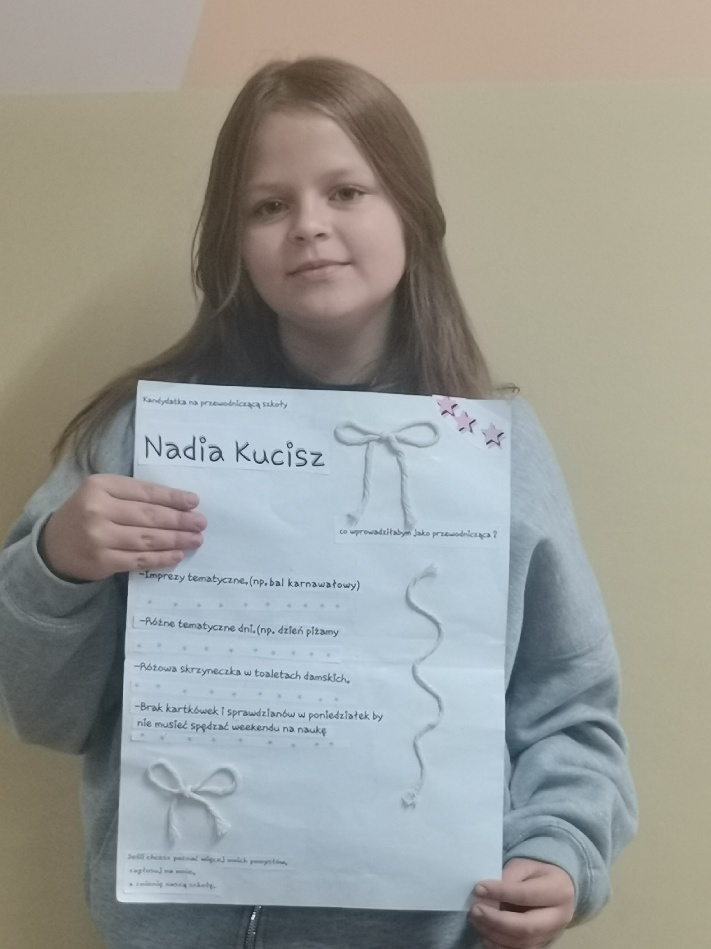 W minioną środę odbyły się w naszej szkole wybory do Samorządu Uczniowskiego. To było prawdziwe święto demokracji! W szranki stanęły: Jagoda Buczyńska z klasy VIII, Wiktoria Chrypankowska i Nadia Kucisz – obie z VIa. Dziewczęta w kampaniach wyborczych prezentowały punkty swojego programu, rozwieszając w tym celu plakaty i przekonując w bezpośredniej rozmowie swoje koleżanki i kolegów. Ostatecznie zwyciężyła Jagoda Buczyńska, wielkie gratulacje! Jagoda, Wiktoria i. Nadia będą budować fundamenty uzniowskiej samorządności w Katolickiej Szkole Podstawowej w Piszu w roku szkolnym 2024 /2025. Gratulujemy i życzymy pasji w działaniu!
