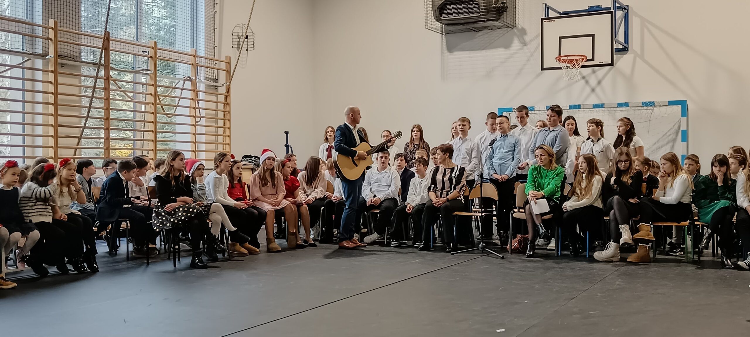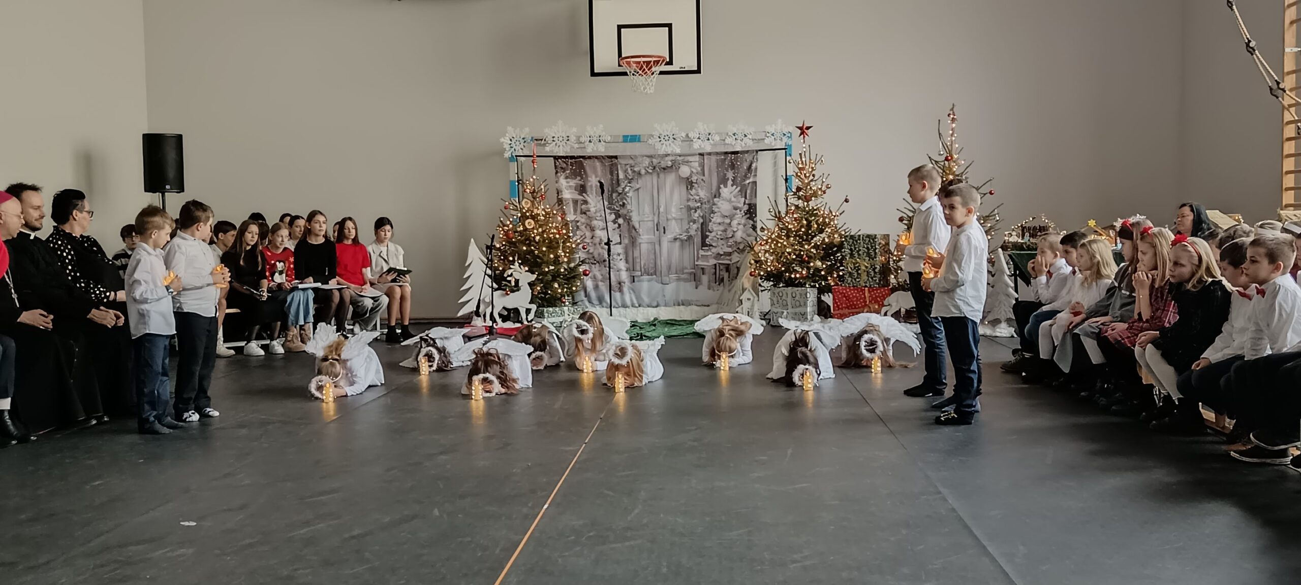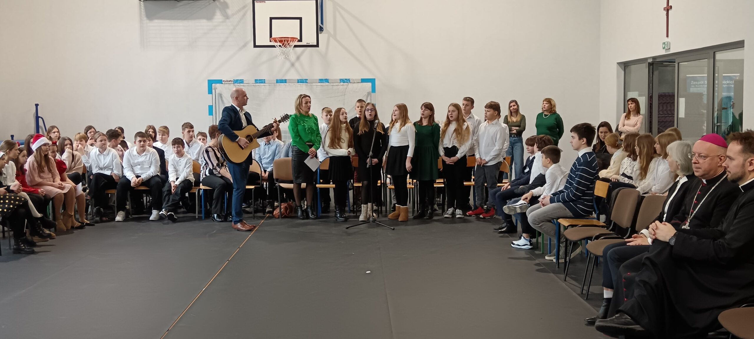 20 grudnia przeżywaliśmy spotkanie wigilijne w gronie całej społeczności szkolnej. Spotkaliśmy się na wspólnej Eucharystii, której przewodniczył Ksiądz Biskup Dariusz Zalewski. Następnie udaliśmy się na część artystyczną, w czasie której każda z klas wykonała kolędę lub pastorałkę. Zakończeniem wspólnego kolędowania był występ nauczycieli i pracowników szkoły.