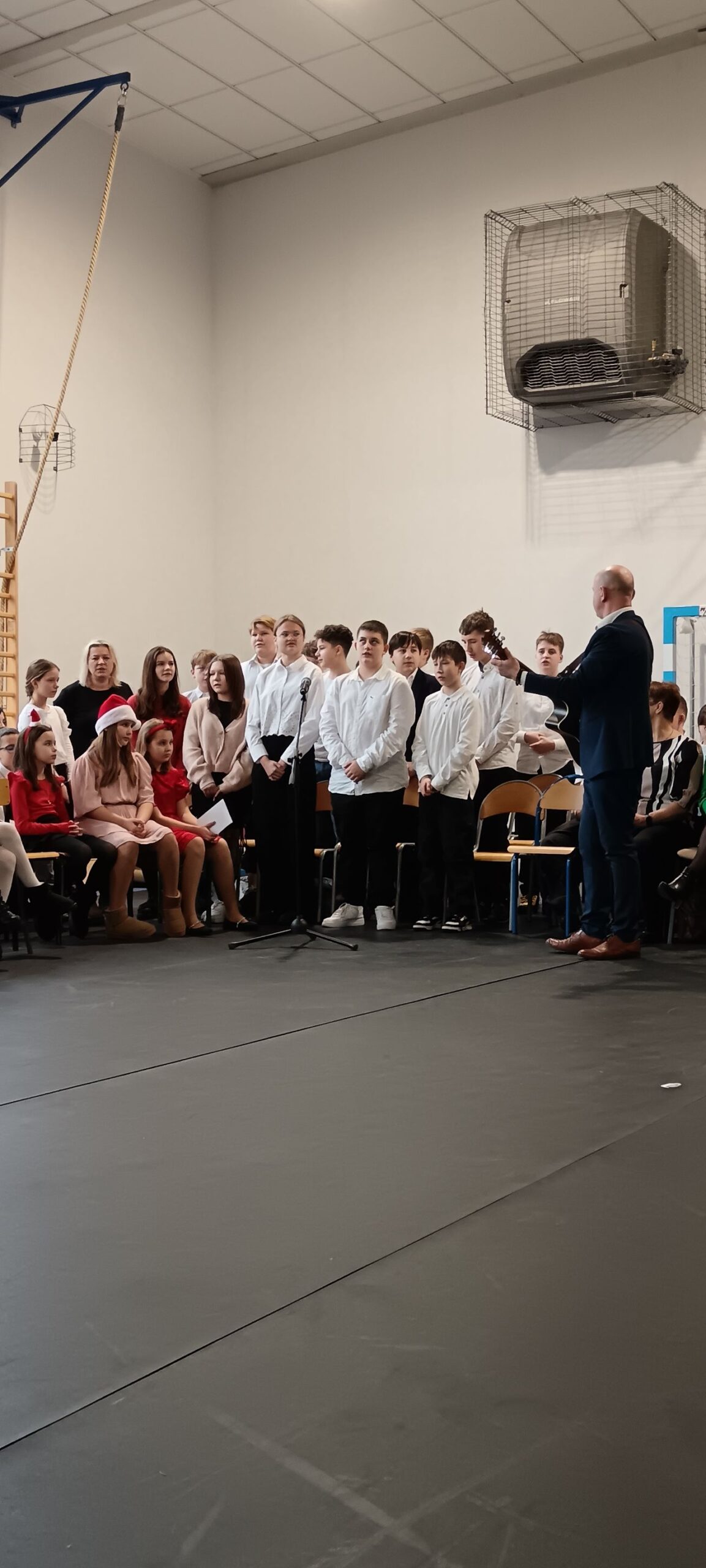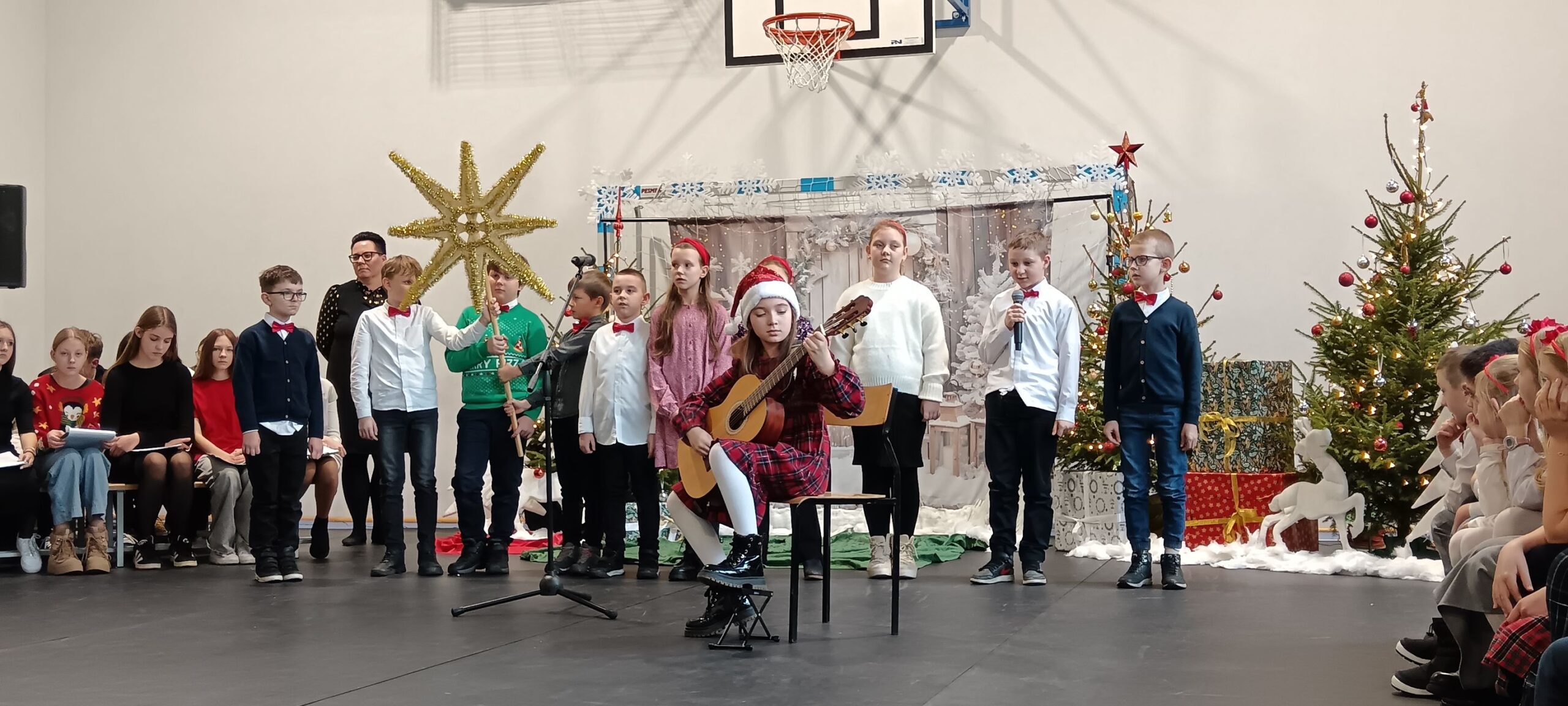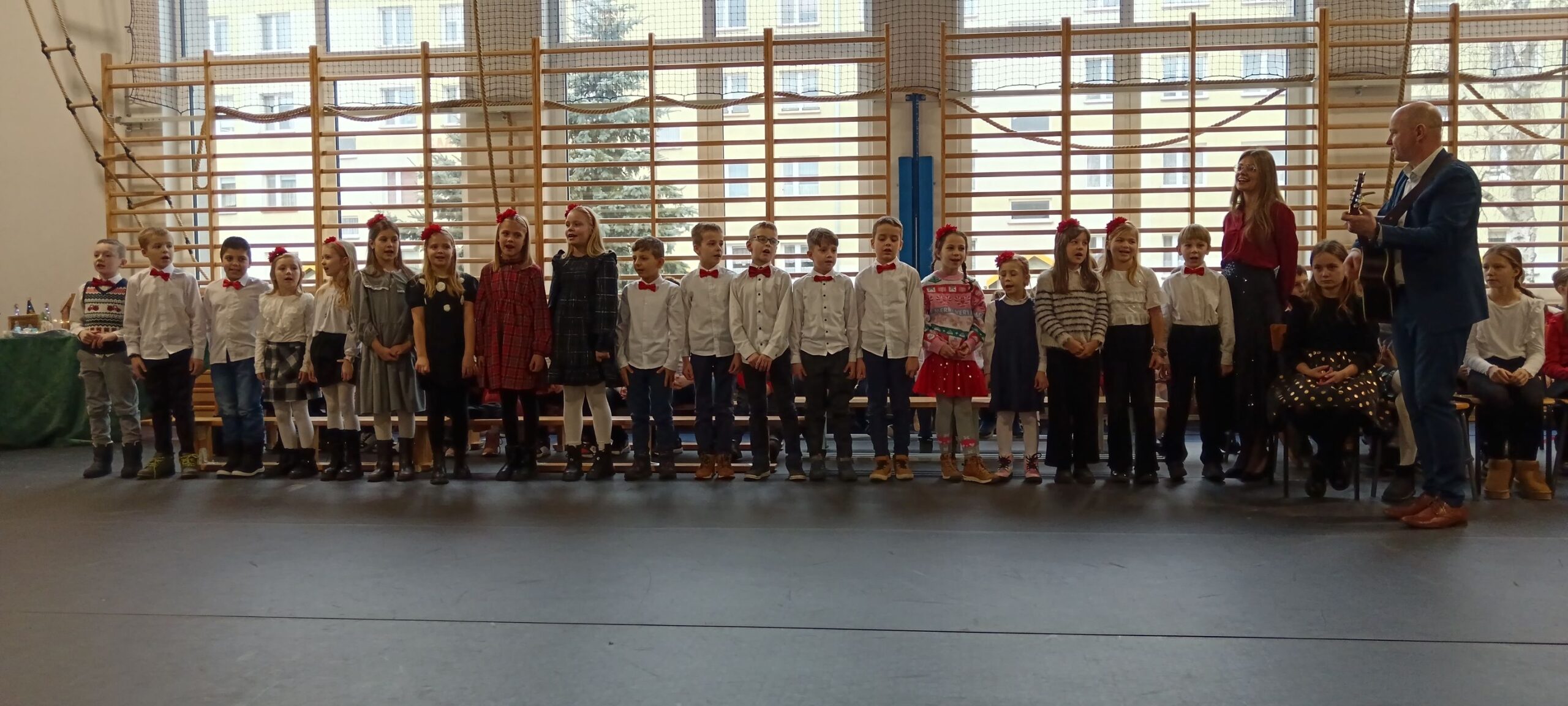 20 grudnia przeżywaliśmy spotkanie wigilijne w gronie całej społeczności szkolnej. Spotkaliśmy się na wspólnej Eucharystii, której przewodniczył Ksiądz Biskup Dariusz Zalewski. Następnie udaliśmy się na część artystyczną, w czasie której każda z klas wykonała kolędę lub pastorałkę. Zakończeniem wspólnego kolędowania był występ nauczycieli i pracowników szkoły.