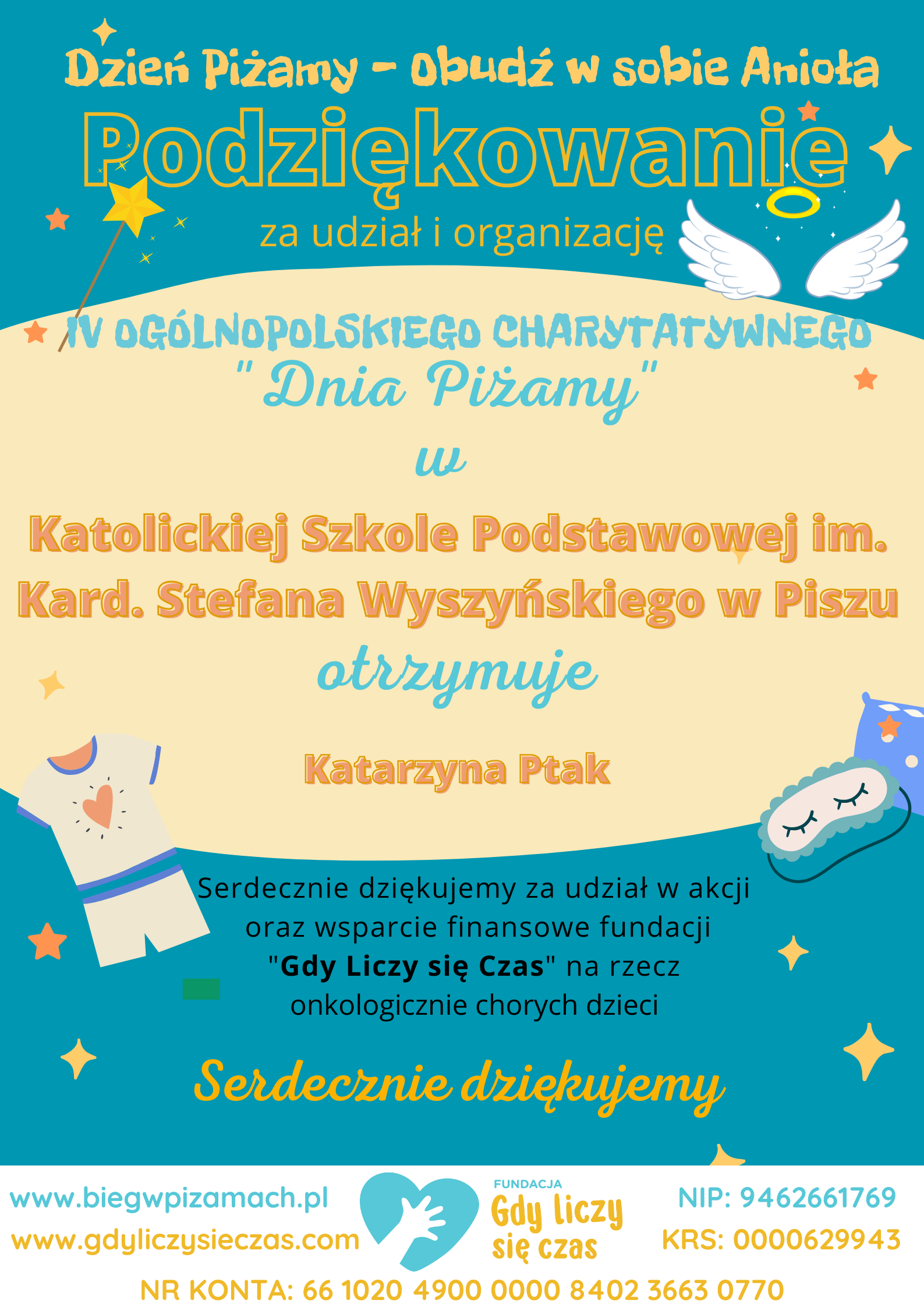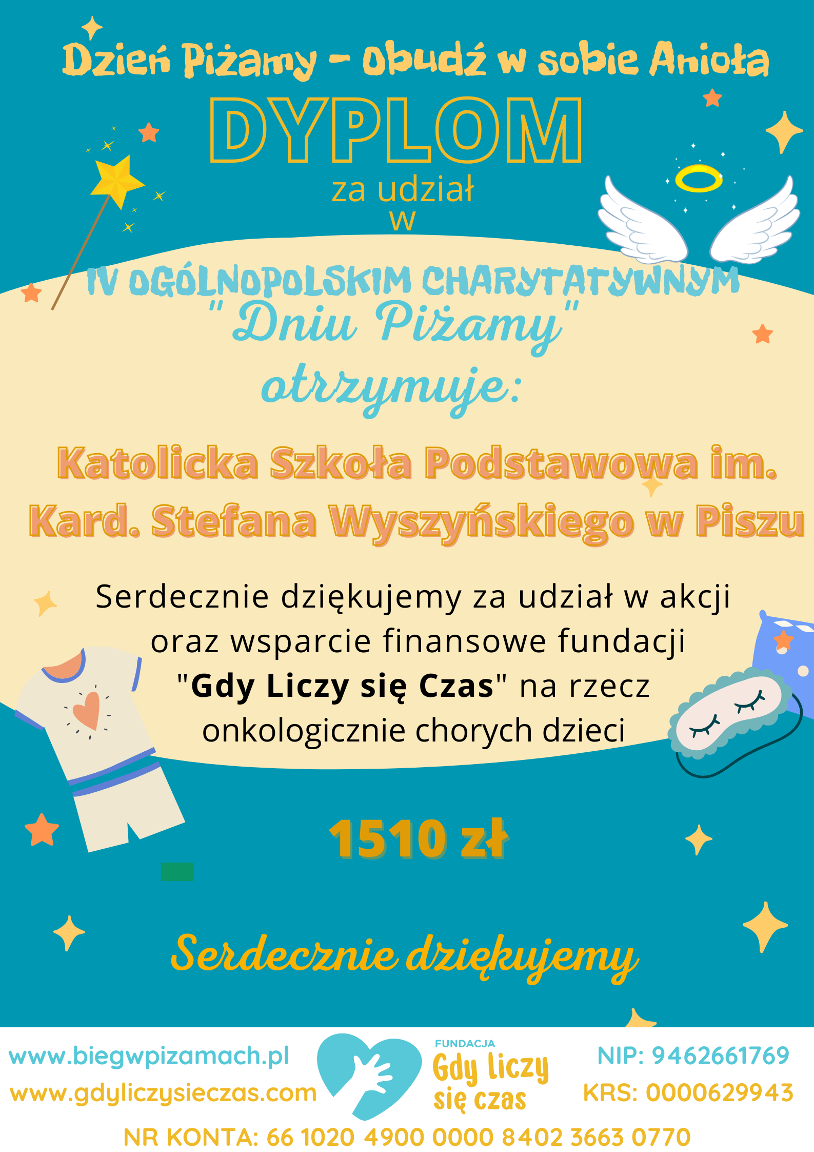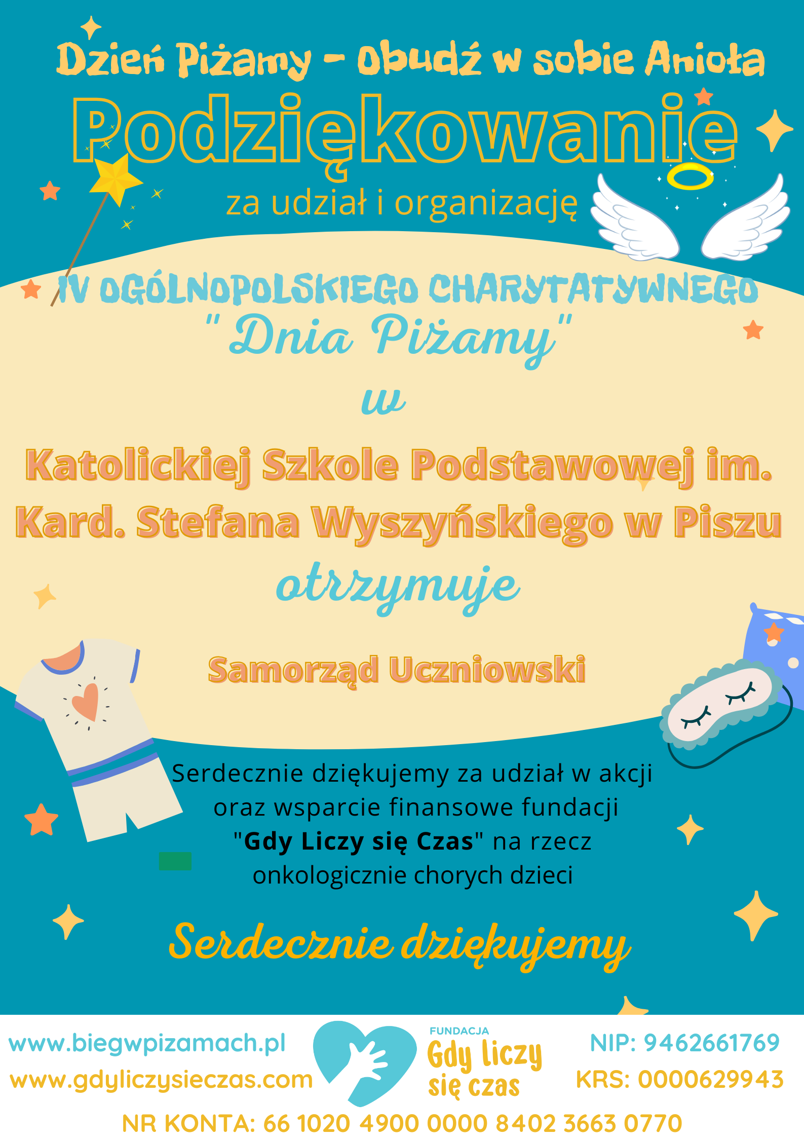 Fundacja „Gdy liczy się czas” bardzo dziękuje całej społeczności skupionej wokół naszej szkoły za pomoc w budowaniu lepszego jutra dla dzieci chorych onkologicznie