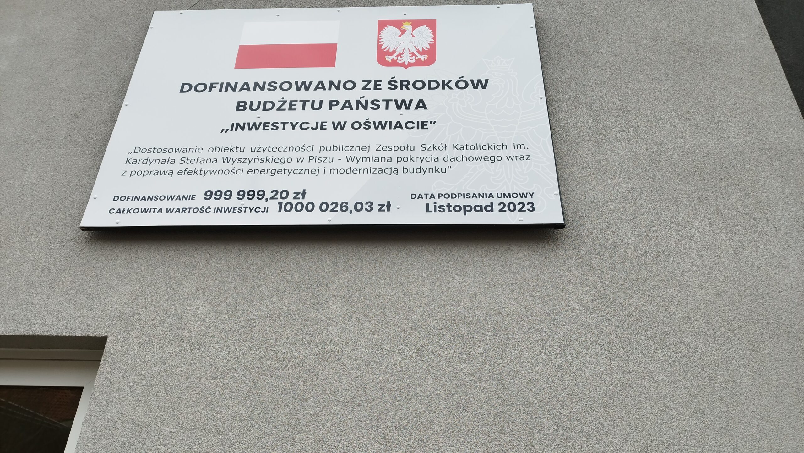 W listopadzie 2024 roku zakończyliśmy realizację projektu „Dostosowanie obiektu użyteczności publicznej Zespołu Szkół Katolickich im. Kardynała Stefana Wyszyńskiego w Piszu – Wymiana pokrycia dachowego wraz z poprawą efektywności energetycznej i modernizacją budynku”.