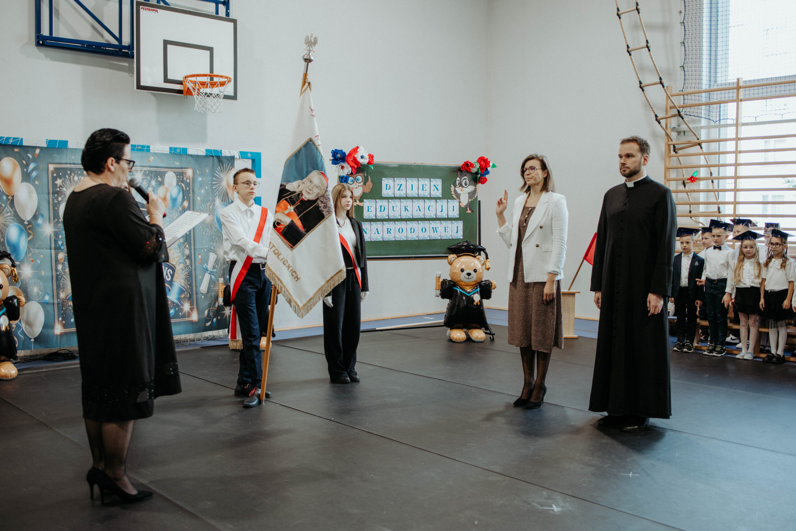 10 października w naszej szkole świętowaliśmy Dzień Edukacji Narodowej. W tym dniu odbyła się również uroczystość Pasowania na ucznia. Słowa podziękowania nauczycielom, pracownikom administracji i obsługi za codzienny trud i wkład pracy włożony w kształcenie i wychowanie uczniów złożyła Pani Prezes Stowarzyszenia Rodzin Katolickich, Pani Wiesława Jankiewicz oraz Dyrektor szkoły, Pani Kamila Szymanowska. Rotę ślubowania złożyli nauczyciele, którzy w tym roku odebrali akt nadania stopnia nauczyciela mianowanego. Nagrodę Stowarzyszenia Rodzin Katolickich im. M. M. Kolbego otrzymała Pani Joanna Stachelek oraz ks. Piotr Bączyński. Nagrodę Dyrektora otrzymała Pani Jolanta Zakrzewska oraz Pani Anna Rutkowska.