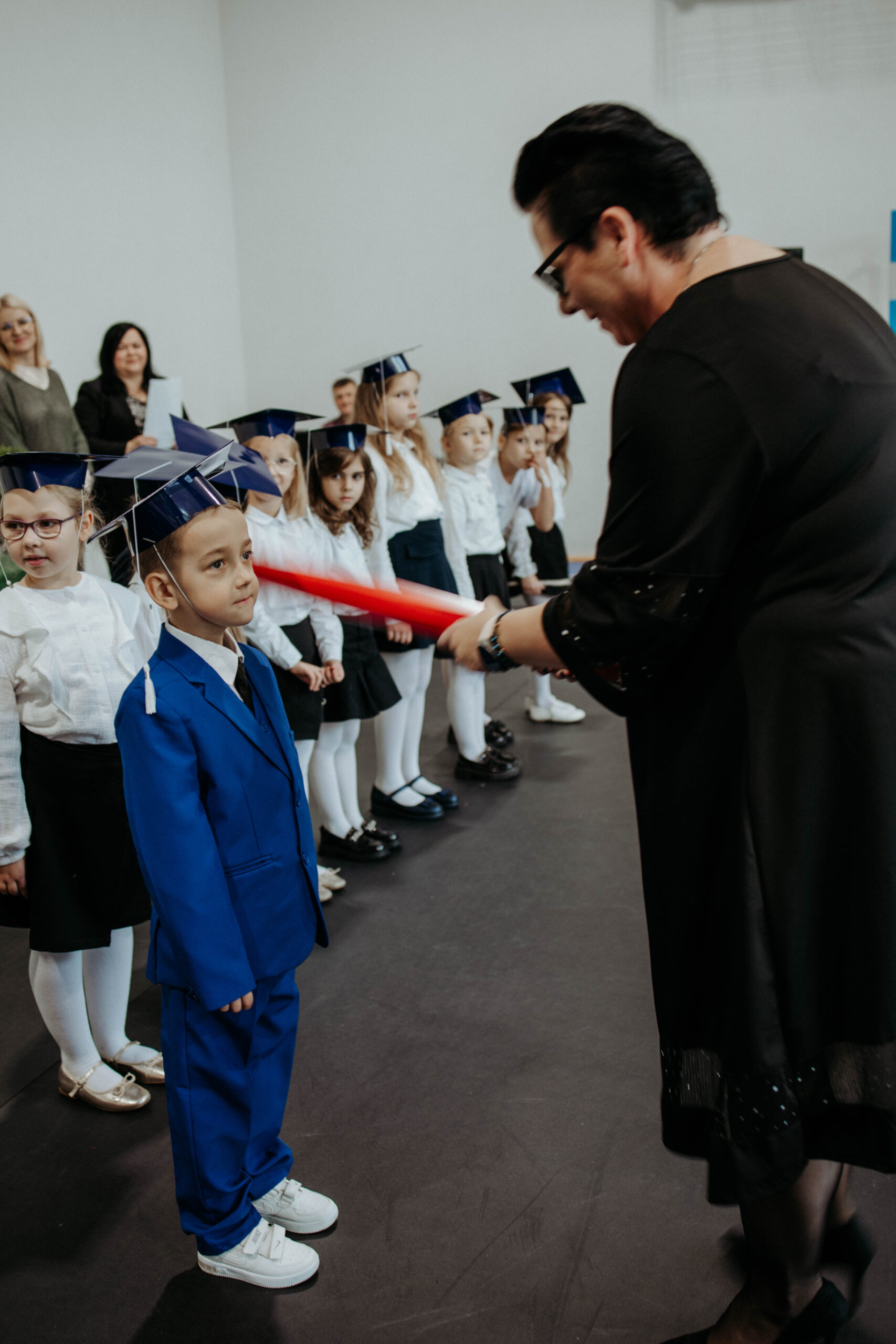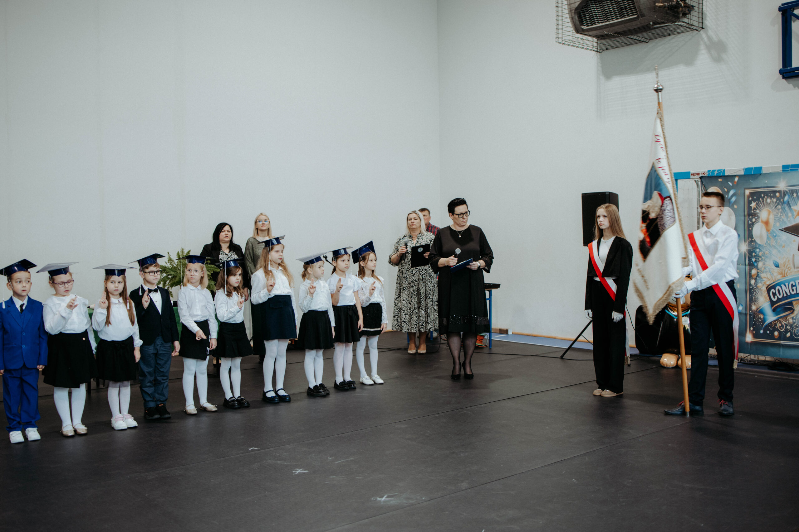 Doniosłym momentem uroczystości było ślubowanie pierwszoklasistów, które wzbudziło wiele emocji szczególnie wśród przejętych uczniów klas I. Uczniowie klasy Ia i klasy Ib zostali uroczyście przyjęci w poczet uczniów naszej szkoły, na dowód czego złożyli odcisk palca w kronice szkolnej oraz otrzymali pamiątkowe dyplomy pasowania na ucznia. Dziękujemy wszystkim za obecność i wspólne celebrowanie tej doniosłej chwili. Składamy także serdeczne podziękowania rodzicom i osobom zaangażowanym w uroczystość. Dziękujemy, że byliście z nami.