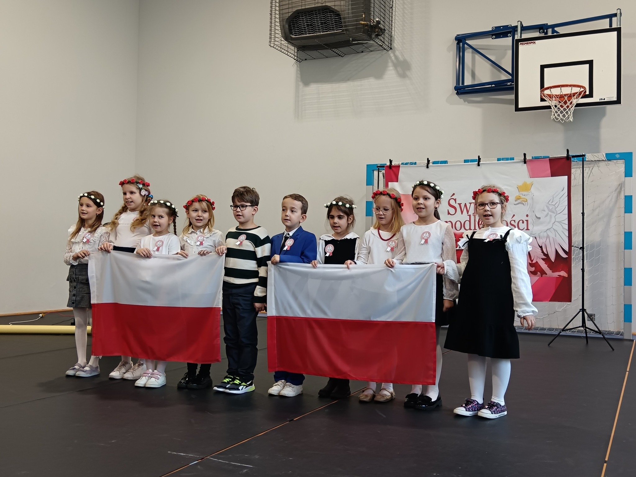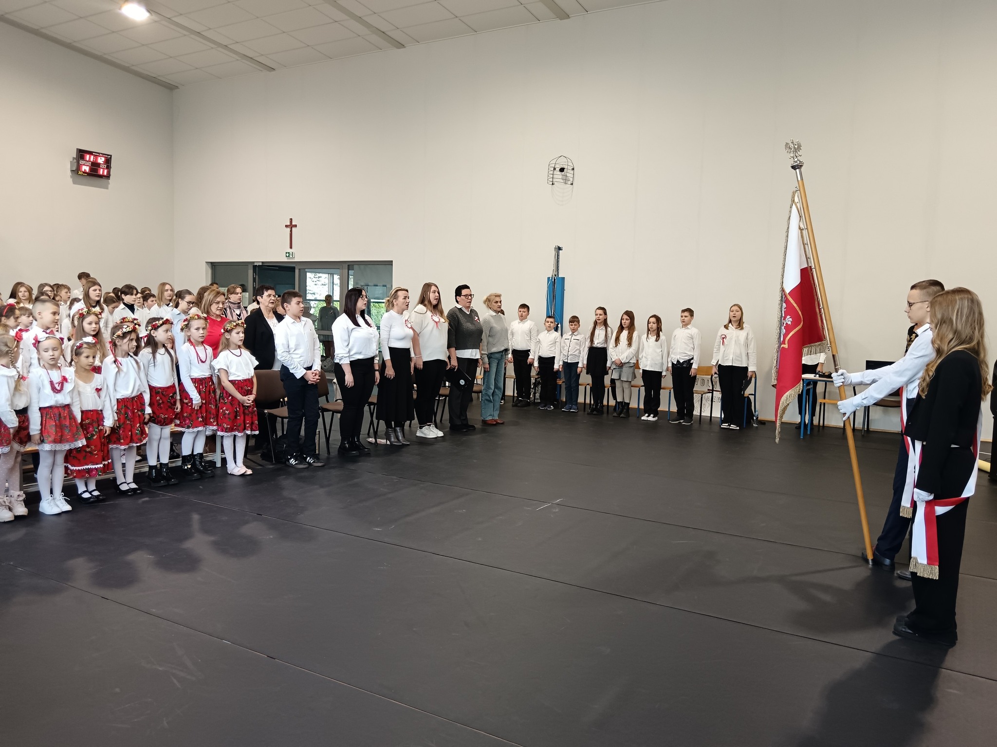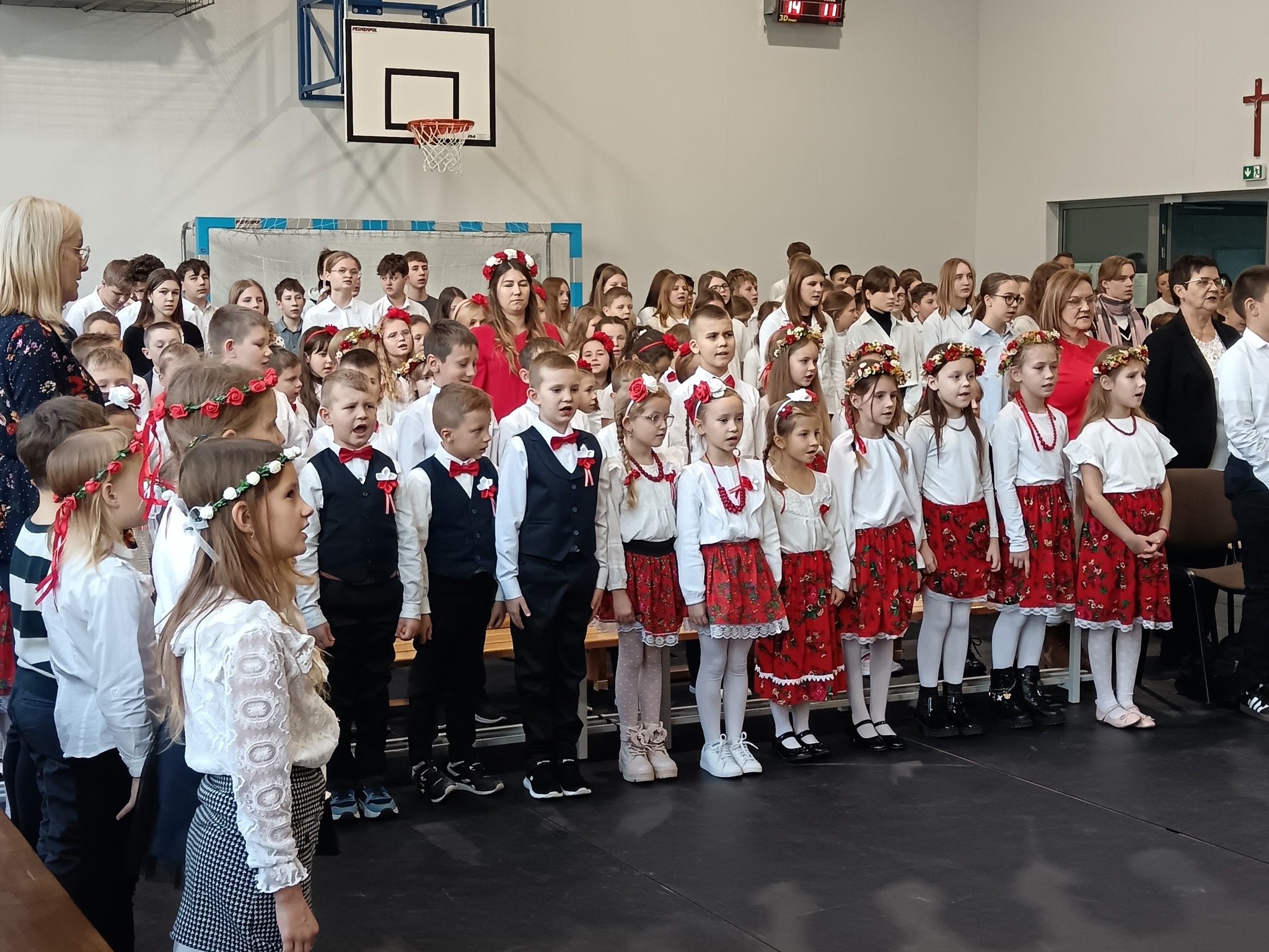Na zakończenie tego dnia spotkaliśmy się wszyscy na uroczystej akademii z okazji Święta Niepodległości, podczas której wspólnie uczciliśmy pamięć tych, którzy walczyli o wolność naszej Ojczyzny. Cała społeczność Zespołu Szkół Katolickich wzięła udział w ogólnopolskiej akcji „Szkoła do hymnu”. O godz. 11.11 wspólnie odśpiewaliśmy „Mazurka Dąbrowskiego”, łącząc się z tysiącami uczniów w całej Polsce. Uczniowie klas 1-3 oraz klasy 4b pod opieką nauczycieli przygotowali piękny program artystyczny pełen refleksji nad znaczeniem wolności i niepodległości.
